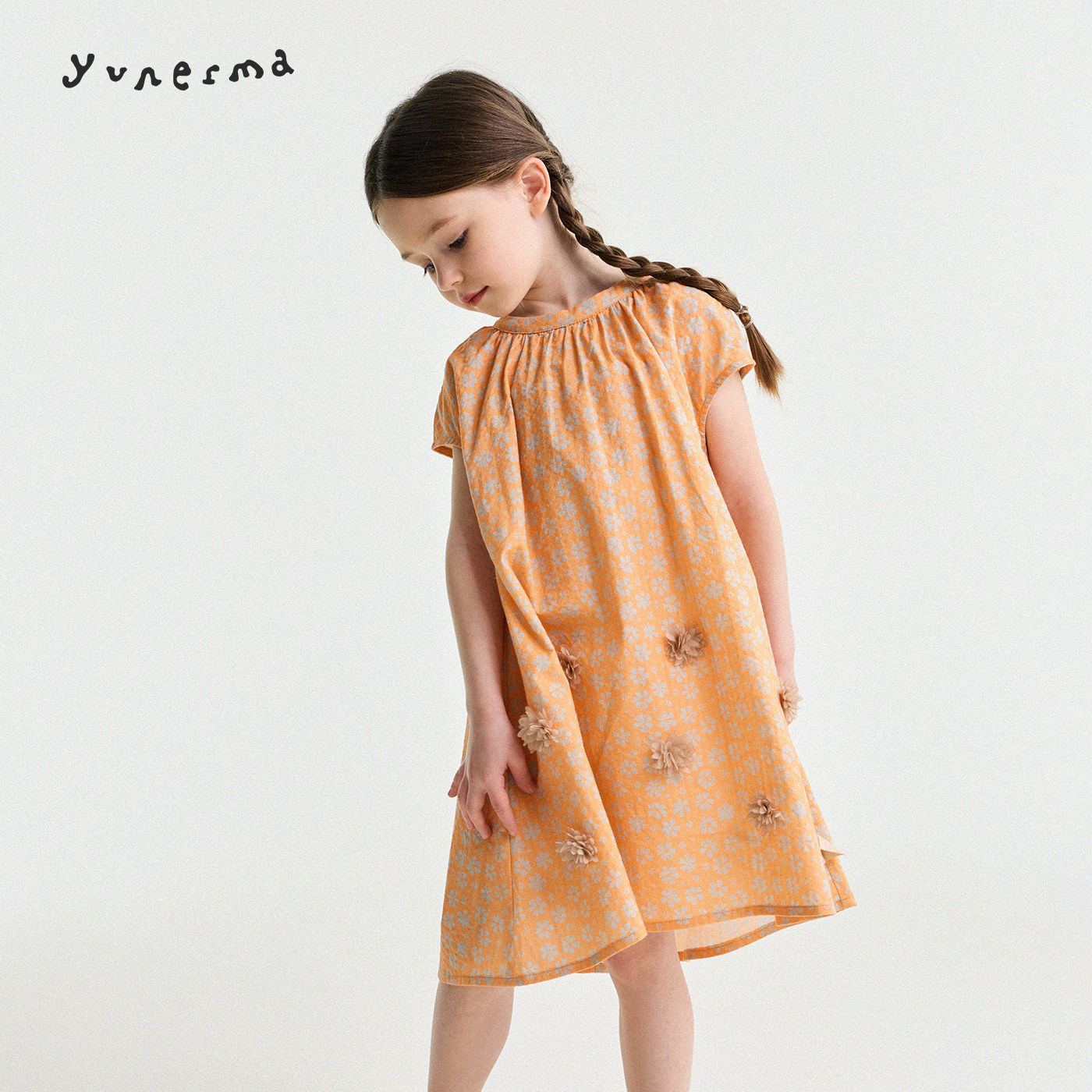 马克珍妮女童棉真丝短袖连衣裙 儿童碎花裙子2026年夏装250009