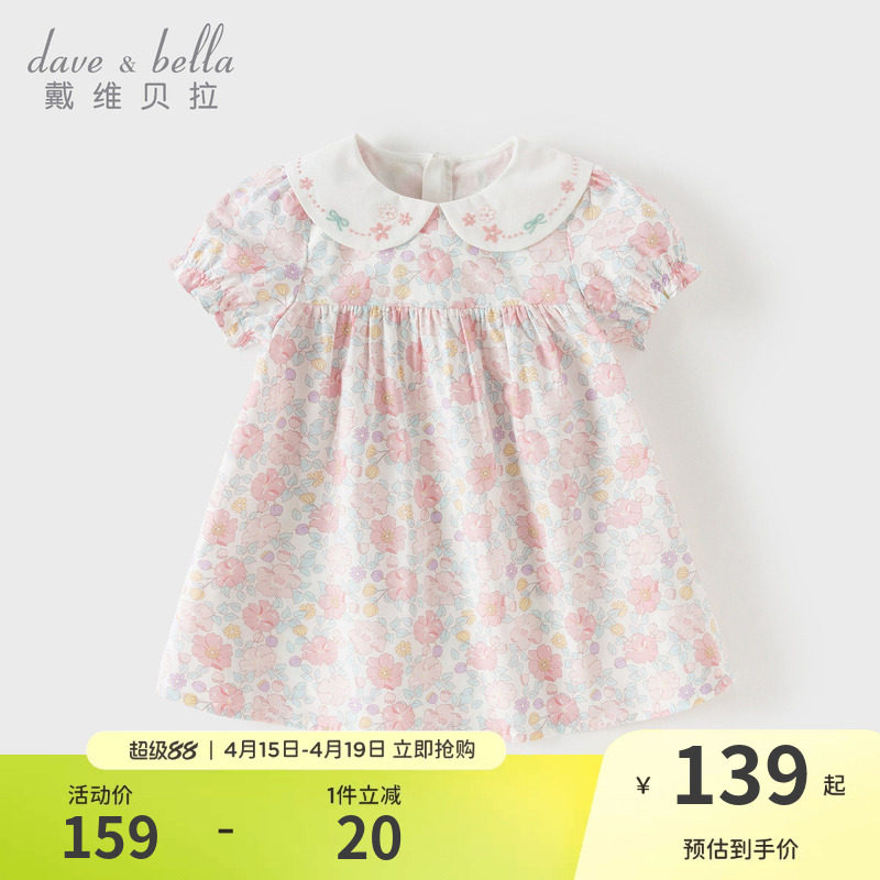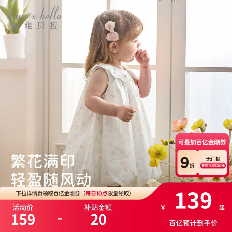 戴维贝拉女童纯棉连衣裙2026夏装新款儿童印花裙子宝宝A类碎花裙