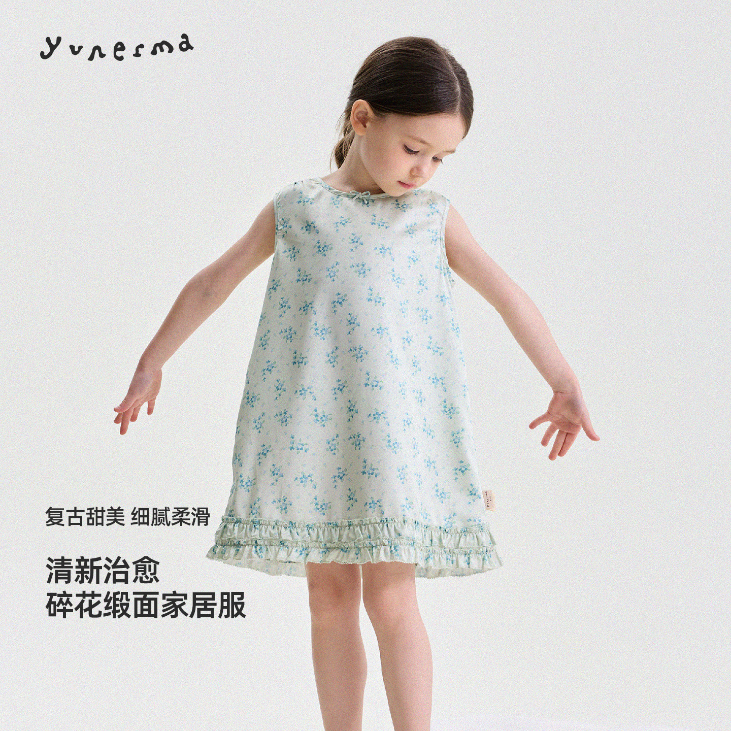 允儿妈女童夏季新款法式凉感睡衣睡裤套装宝宝洋气碎花睡裙家居服