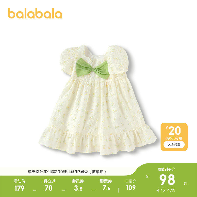巴拉巴拉童装儿童女童连衣裙夏装新款小童宝宝碎花裙方领裙子清新