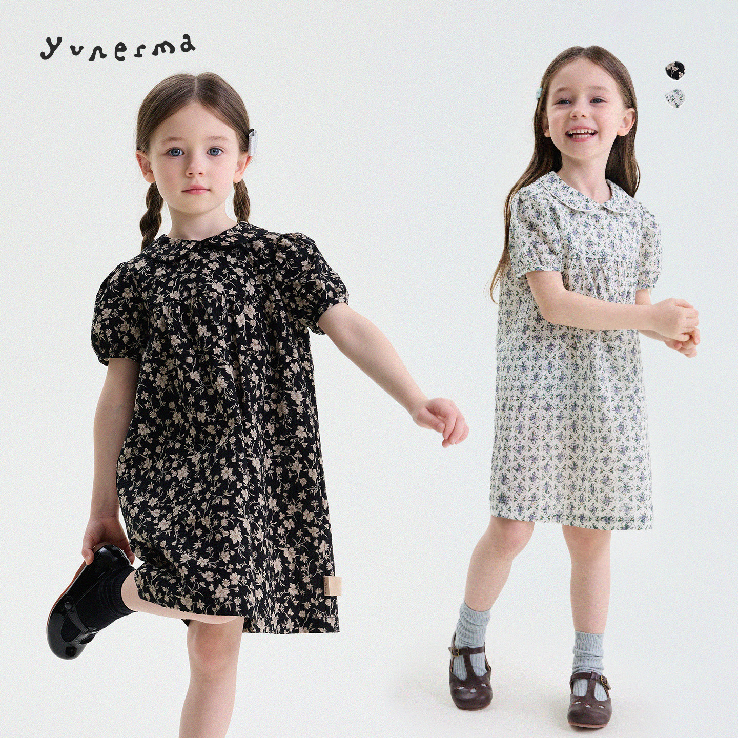 允儿妈女童夏季纯棉气质泡泡袖连衣裙儿童新款碎花公主裙宝宝裙子