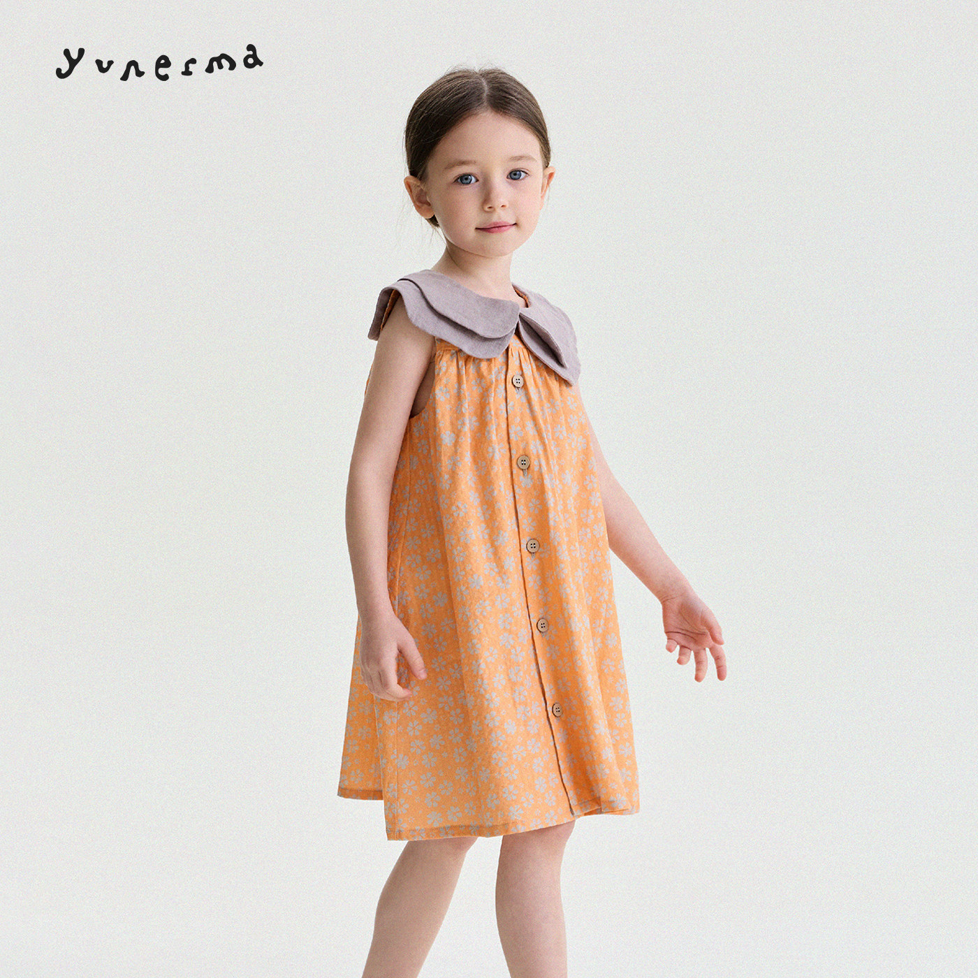 允儿妈女童夏季新款法式翻领碎花背心裙儿童小众公主裙宝宝连衣裙