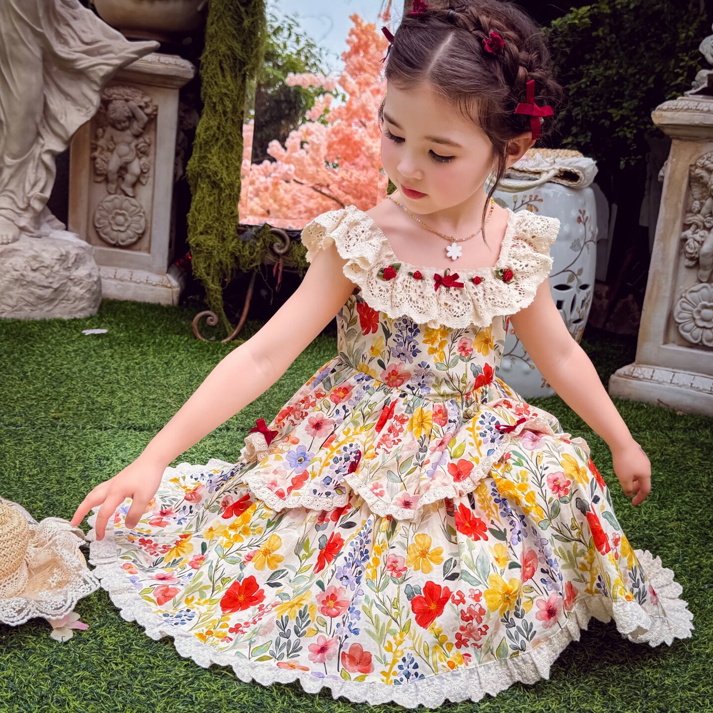 MOMOCO/玛米玛卡女童连衣裙2026新款夏中大童洋气纯棉碎花公主裙