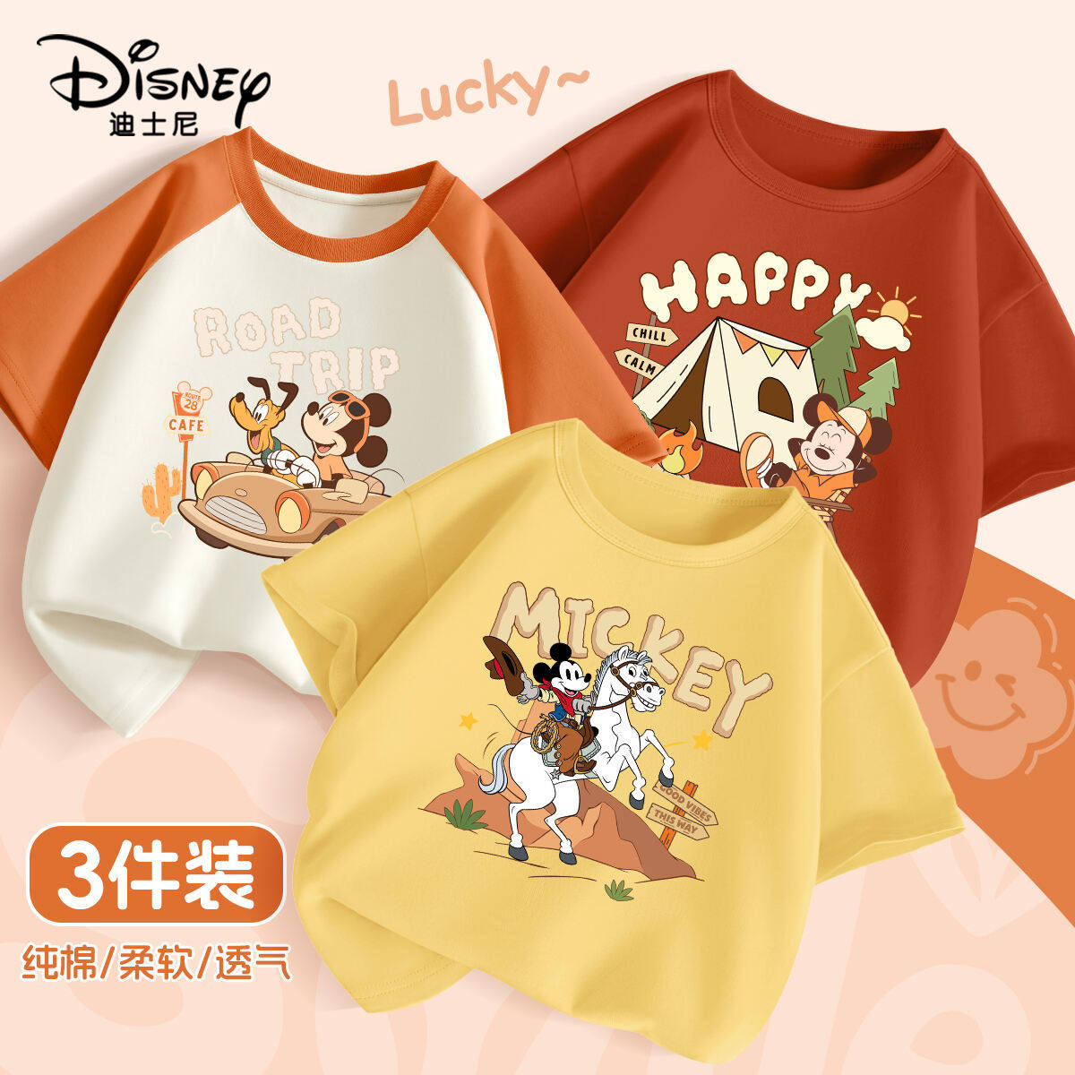迪士尼儿童短袖T恤男童女童a类半袖衣服宝宝卡通上衣夏装新款短袖