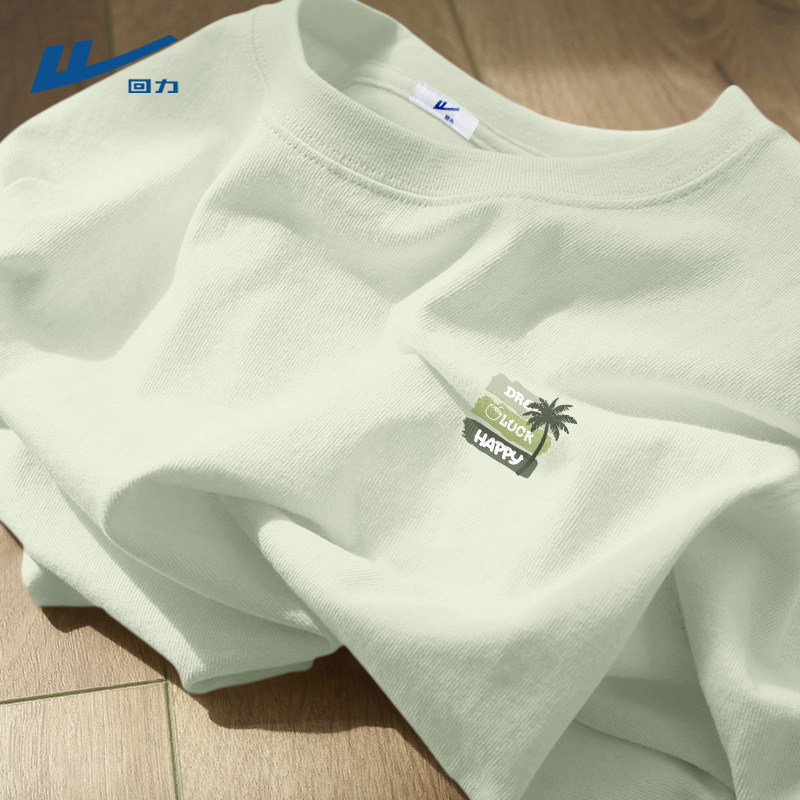 回力男士短袖夏装潮牌圆领纯棉t恤男休闲百搭宽松浅绿色半袖男款C