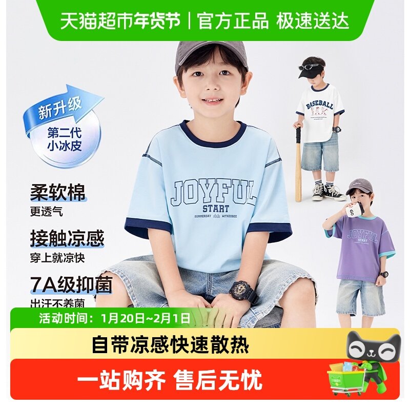 左西童装男童短袖T恤夏装凉感上衣2025新款儿童男孩夏季洋气半袖