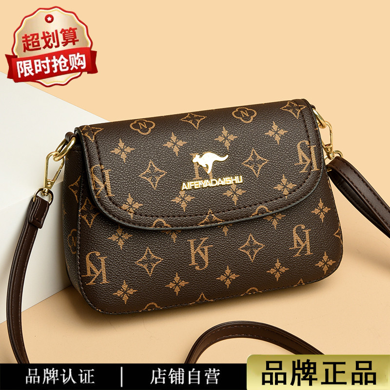真皮质感女包时尚中年妈妈包多层大容量单肩婆婆买菜包斜挎小方包