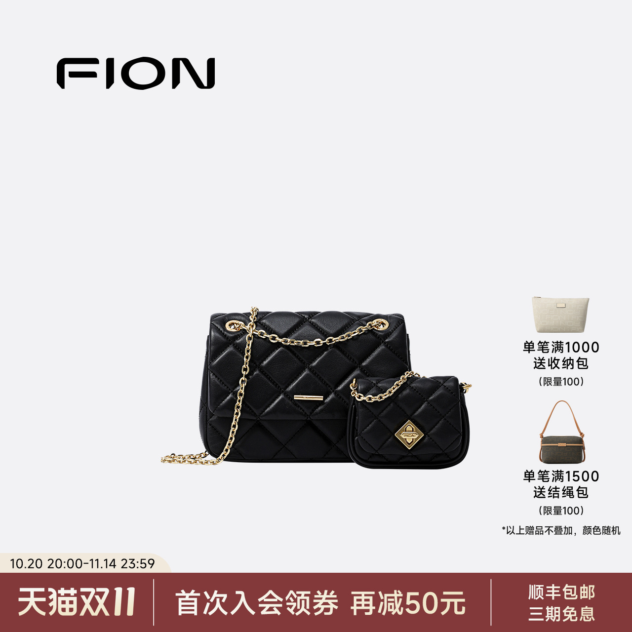 Fion/菲安妮真皮小方包2025新款女小众高级子母斜挎包通勤单肩包