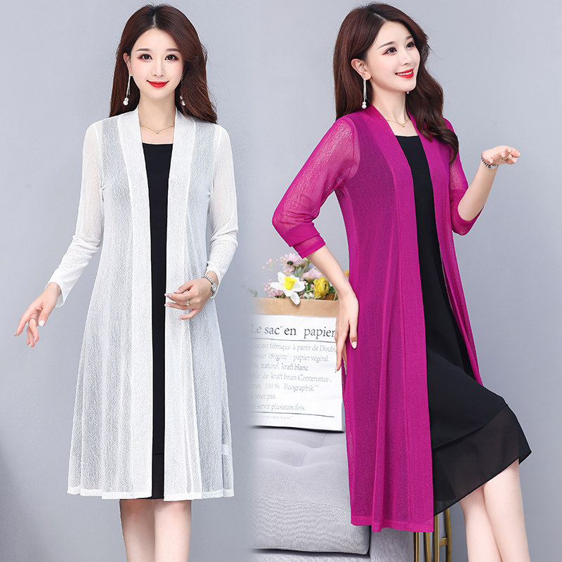 冰丝防晒衣外套女中长版夏季薄款网纱披肩开衫中老年风衣外搭纱衣