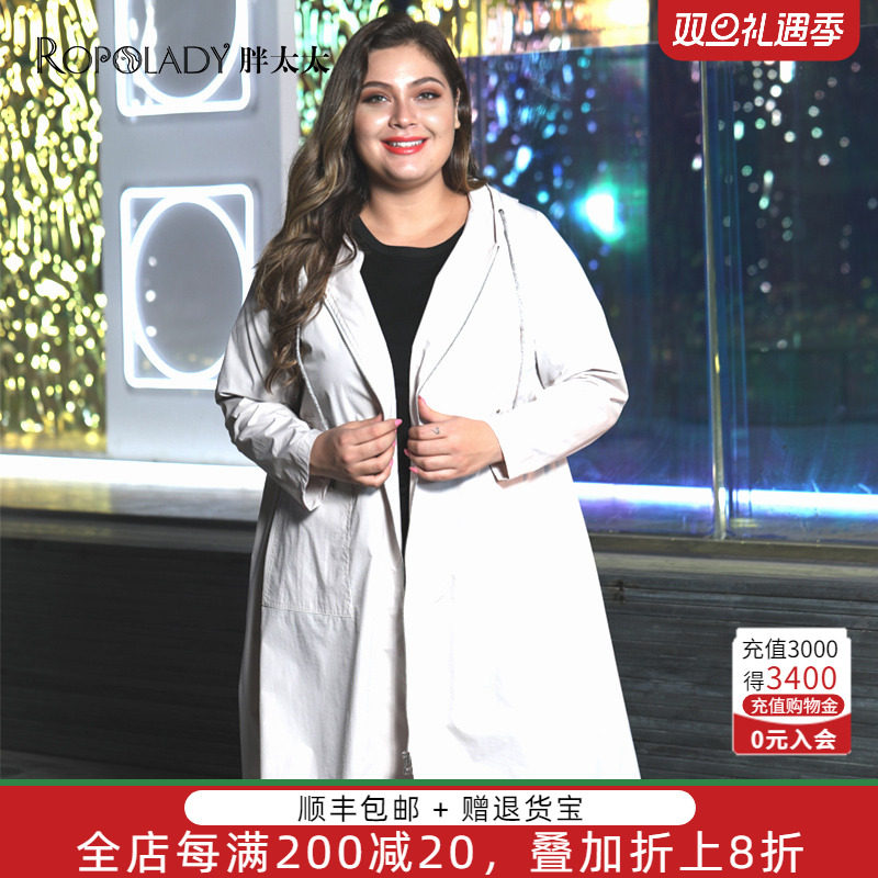 大码女装连帽长袖外套春夏季新款中长款风衣休闲简约潮820110810
