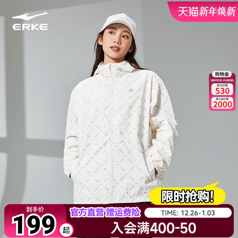 鸿星尔克外套女夏季款女士中长款时尚防风运动服风衣满印上衣女装