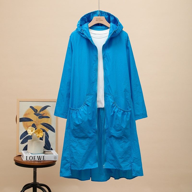 时尚美拉德中长款女夏季2025连帽收腰轻薄风衣外套宽松透气防晒服