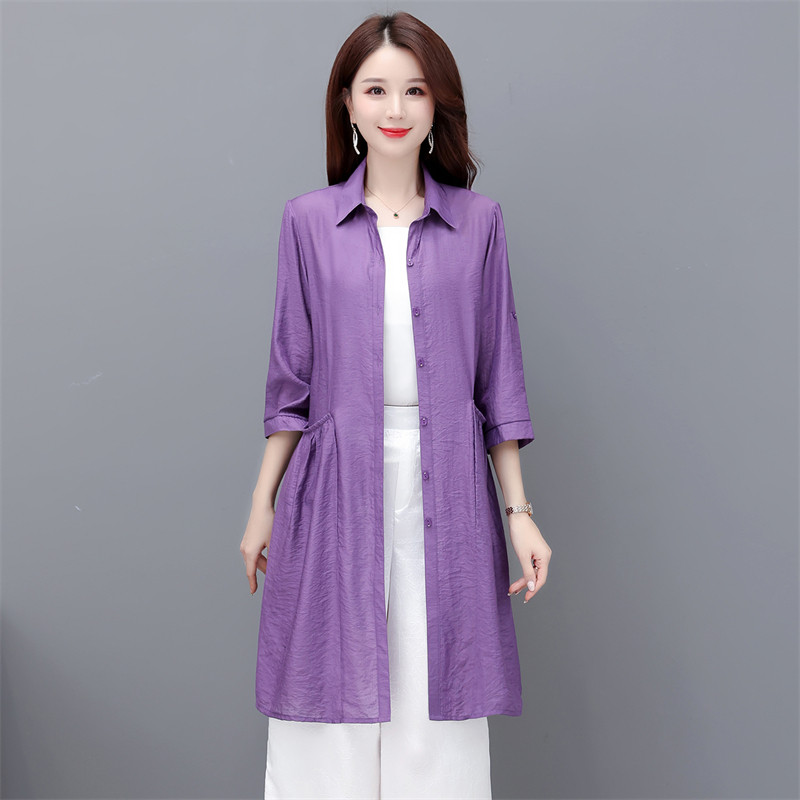 防晒衣中长款薄款风衣女春夏季时尚洋气天丝衬衫外搭开衫妈妈外套