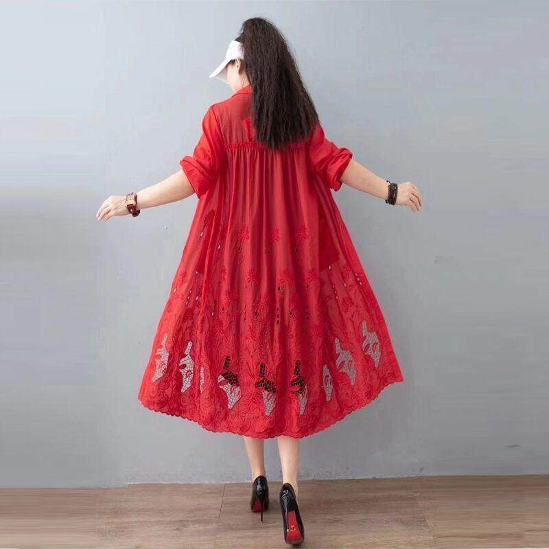 翻领防晒衣中长款2023时尚夏季洋气妈妈时尚镂空刺绣风衣外套女新