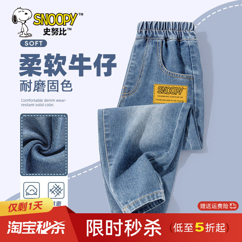 史努比男童裤子2026新款春装长裤男大童薄款休闲裤儿童春秋牛仔裤