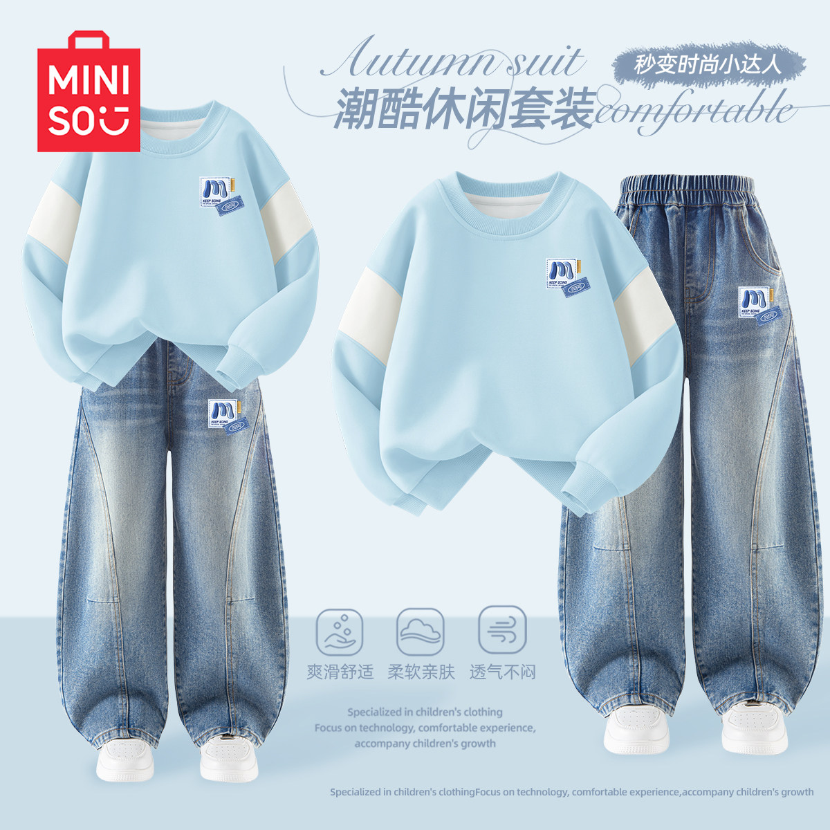 名创优品男童套装2026新款春秋男大童运动服薄款卫衣儿童牛仔裤男