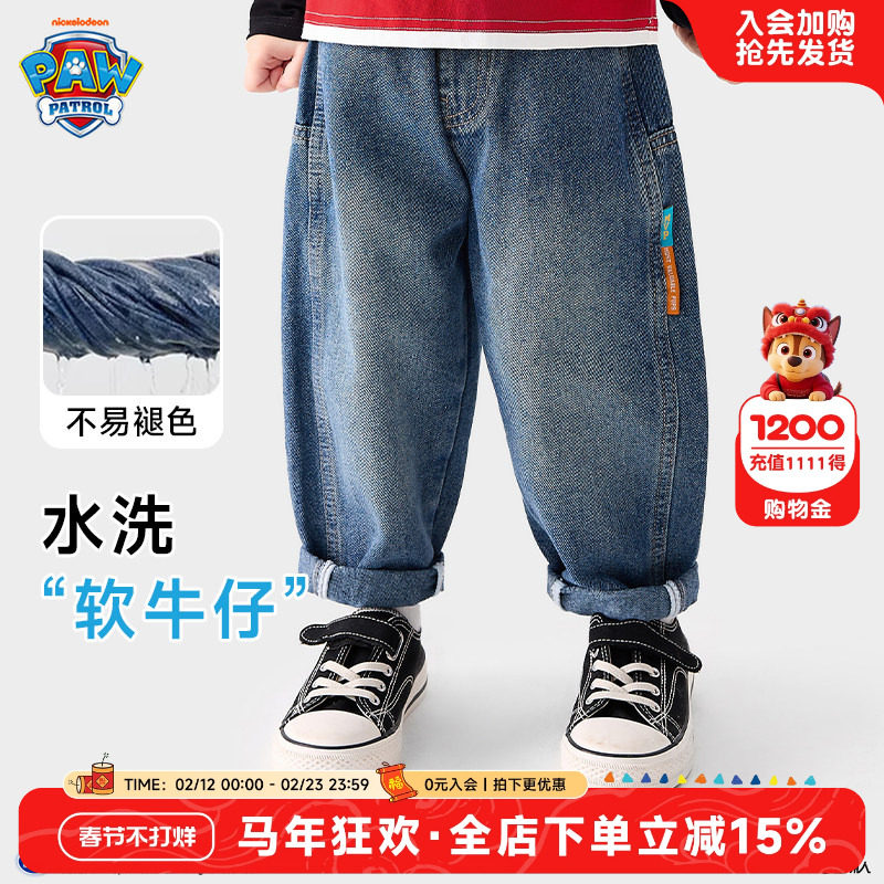 汪汪队儿童牛仔裤薄款春秋男童直筒水洗宝宝运动裤中小童休闲裤子