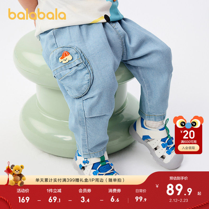 巴拉巴拉宝宝裤子男童牛仔裤2025新款夏季外穿时尚潮童装薄款透气