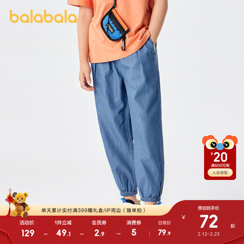 巴拉巴拉童装男童裤子儿童牛仔裤春夏装防蚊薄款大童天丝牛仔束脚