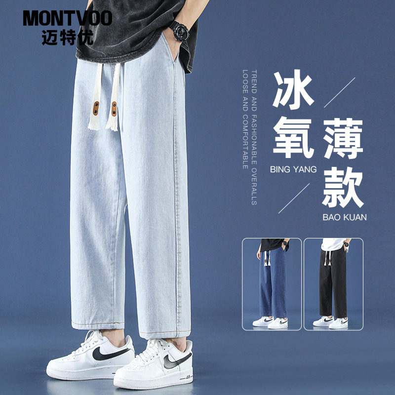 迈特优牛仔裤男士夏季超薄款九分裤子男生宽松直筒潮流夏天休闲裤