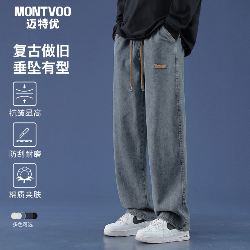 迈特优直筒牛仔裤男春秋季新款美式复古休闲裤子宽松薄款阔腿长裤