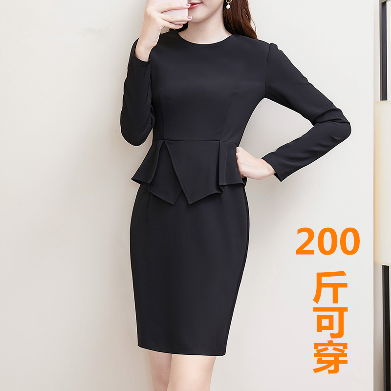 大码职业连衣裙秋装胖mm显瘦长袖工作装包臀裙200斤加肥加大裙子