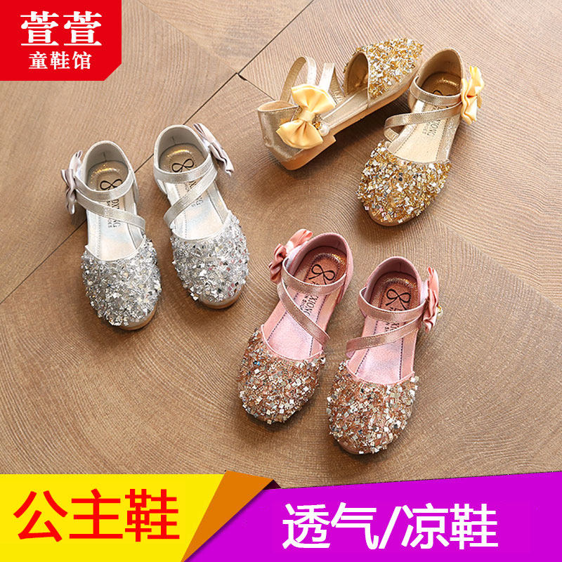 儿童水晶公主鞋女童单鞋软底宝宝小皮鞋亮片防滑演出鞋公主风圆头