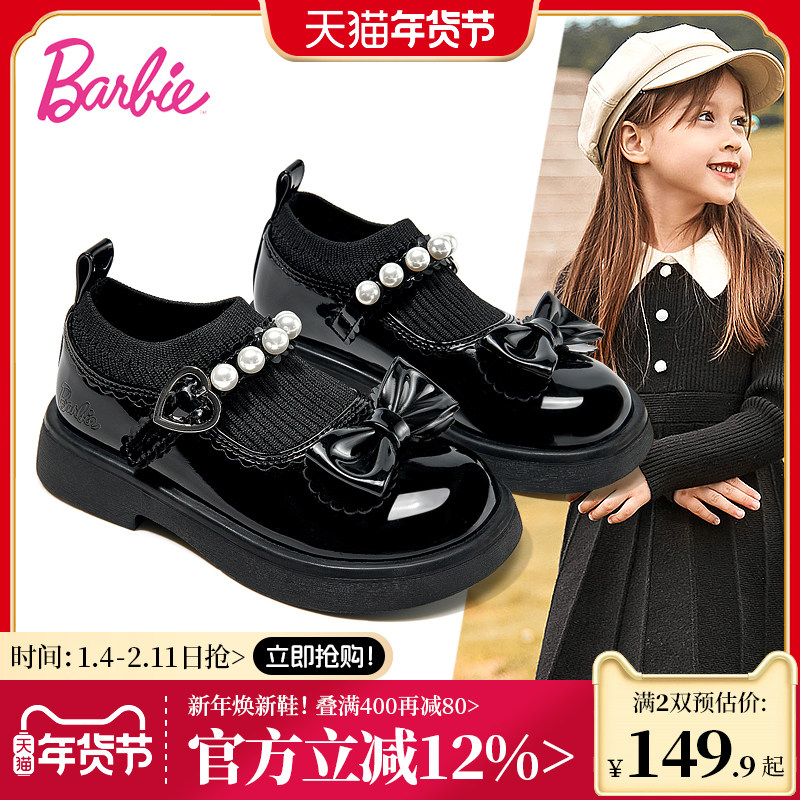 芭比童鞋女童皮鞋2025新款春秋软底黑色皮鞋小女孩公主鞋女童单鞋