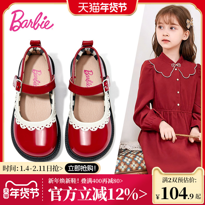芭比童鞋儿童皮鞋2025新款春秋软底新年红色小皮鞋公主鞋女童单鞋