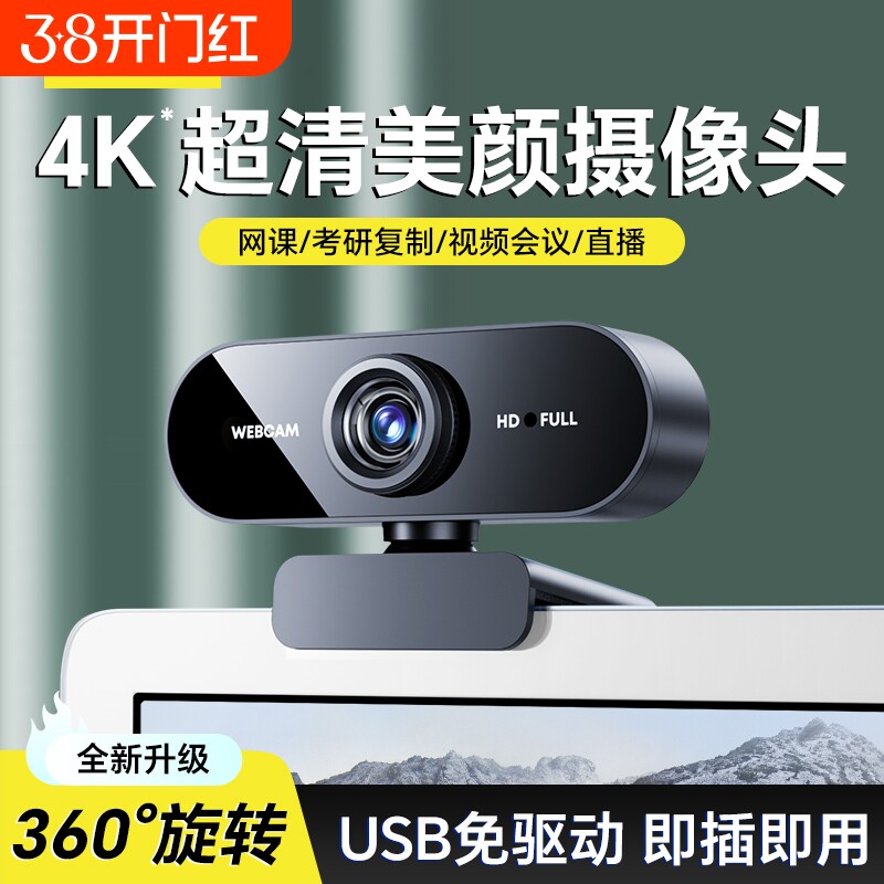高清台式4K电脑摄像头带麦克风美颜直播800万免驱动笔记本摄影头