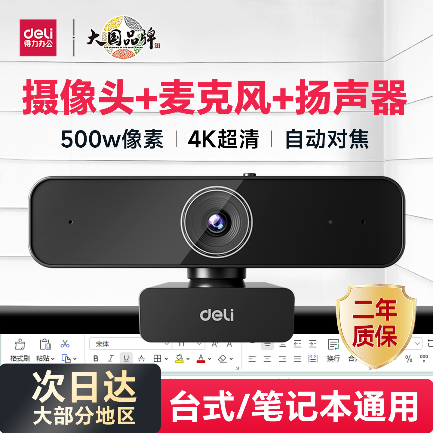 得力电脑摄像头麦克风一体式家用台式机直播USB笔记本外接4K外接