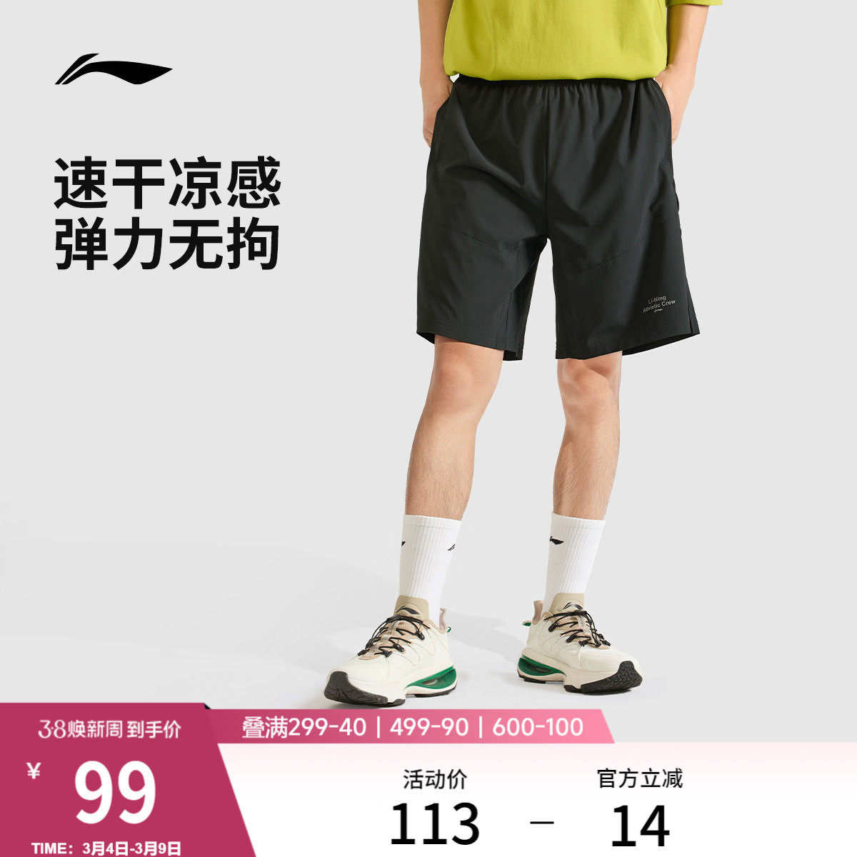 李宁运动短裤男士速干2026夏季新款冰丝透气五分裤健身训练跑步裤