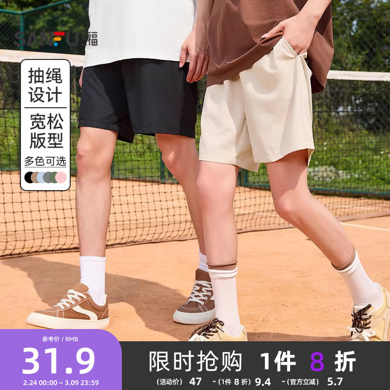 三福2026夏季新款短裤男凉感透气运动情侣健身跑步五分裤宽松裤子