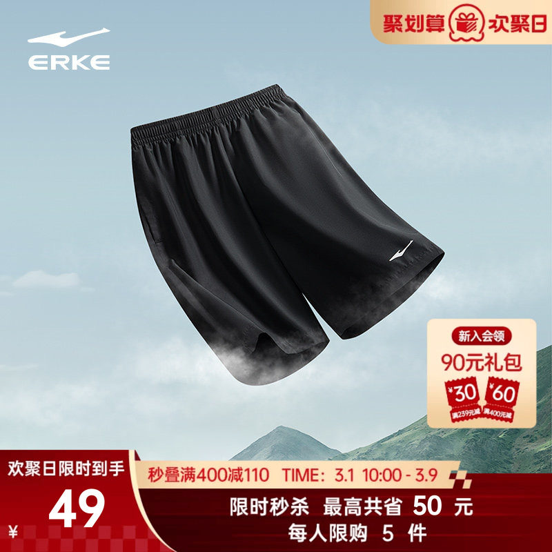 鸿星尔克运动短裤男夏季男士速干裤跑步健身运动裤黑色休闲五分裤