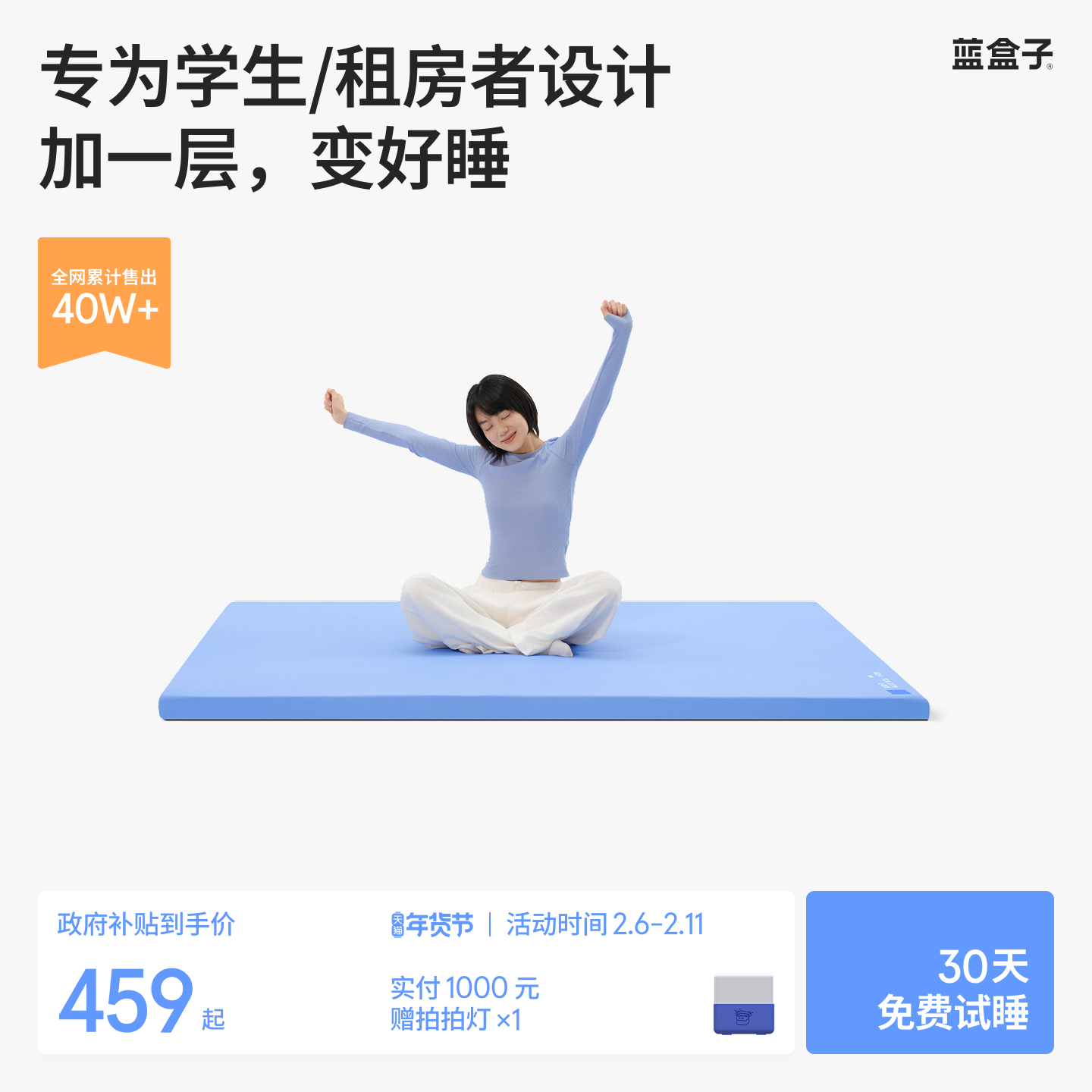 蓝盒子小蓝垫记忆棉床垫薄款垫子床垫褥子学生宿舍软垫单人榻榻米