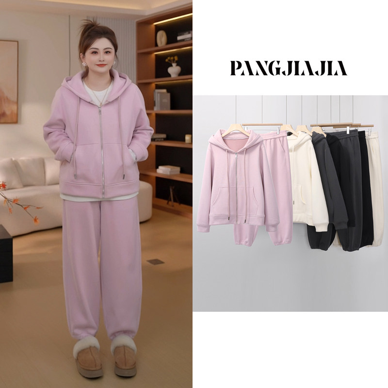 【胖佳佳】胖妹妹mm大码女装暖洋洋套装冬季加厚绒卫衣外套休闲裤