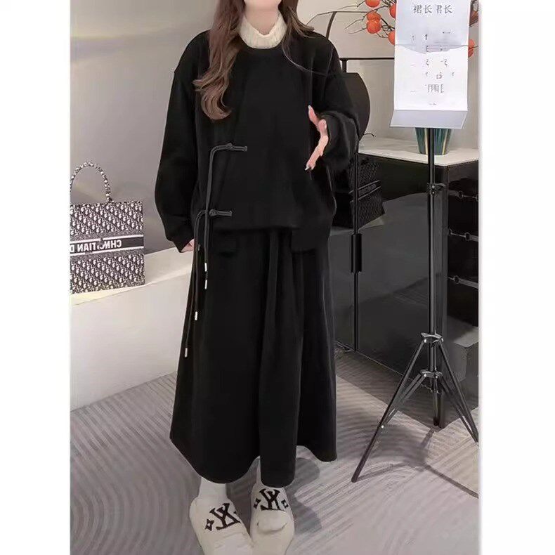 大码300斤胖妹妹休闲套装女秋冬新中式国风卫衣卫裤半身裙两件套2