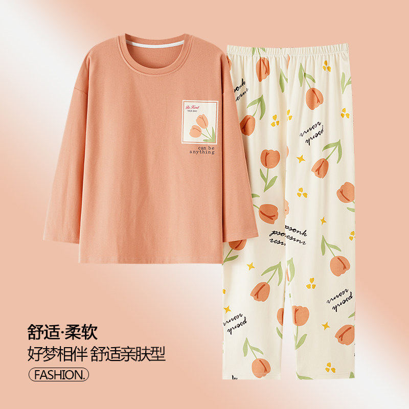 特大码睡衣女春秋季纯棉长袖宽松加肥加大200斤胖妹妹休闲套装6XL