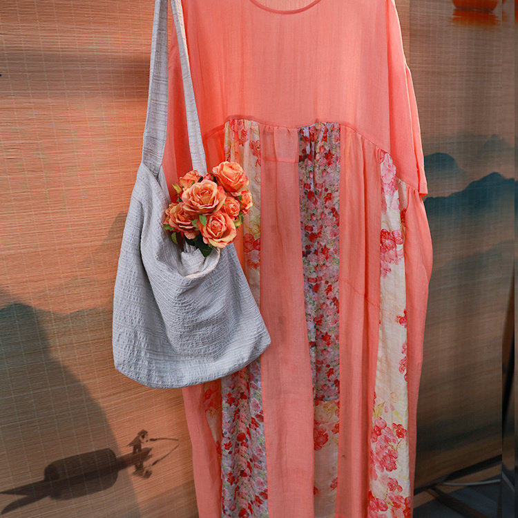 听花香 2025夏 棉麻宽松袍子小众不撞衫文艺清新连衣裙-孤品