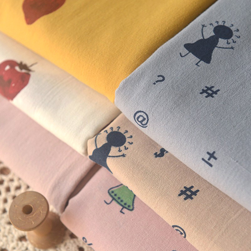 多色小人草莓洗水棉麻布料 原创睡衣上衣服装连衣裙子衬衫窗帘面