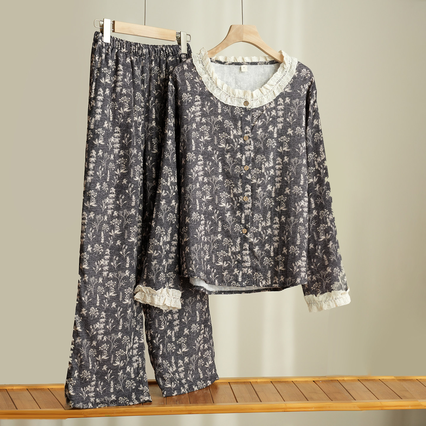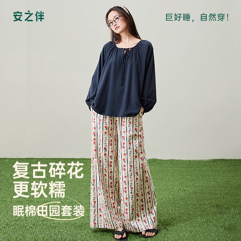 安之伴【巨柔软】睡衣女款春秋季纯棉长袖长裤春款复古碎花家居服