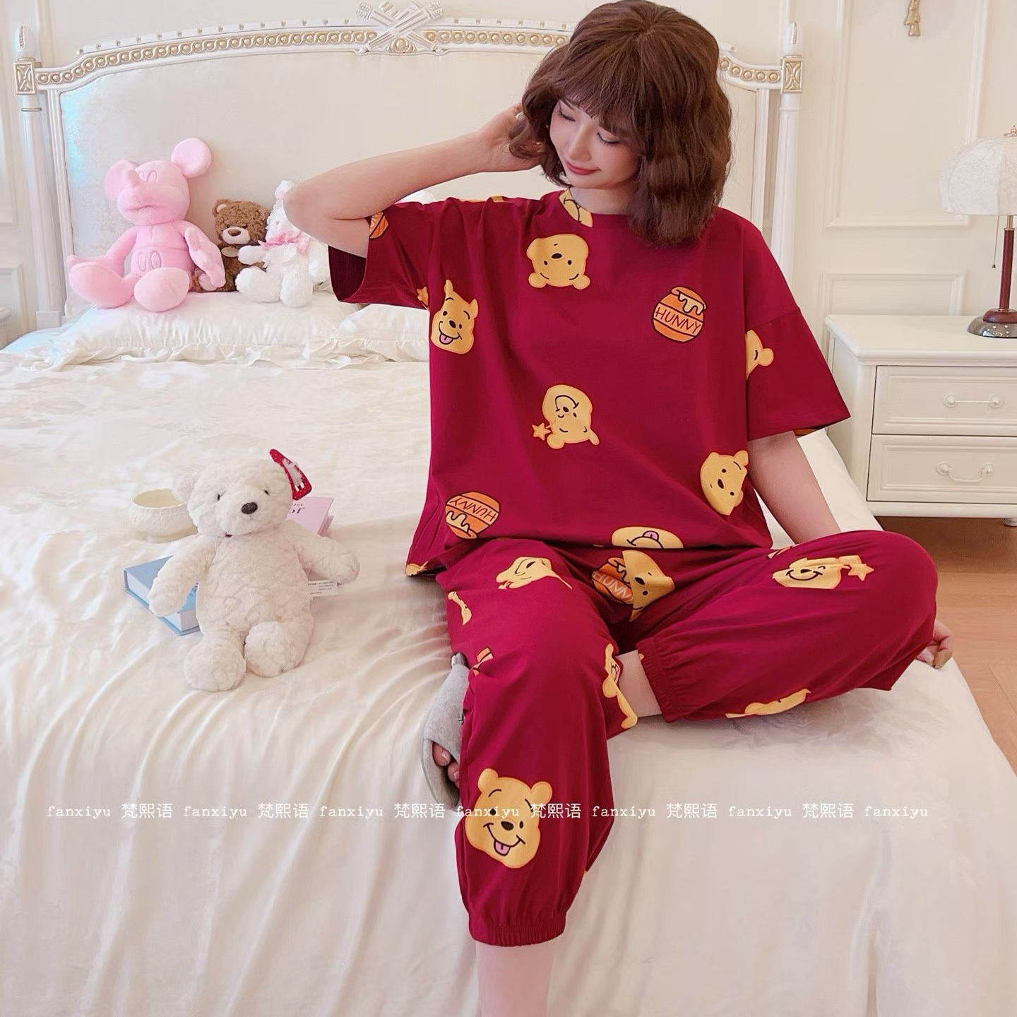 博主推荐梵熙语2026新春款睡衣女纯棉宽松短袖九分裤大码居家外穿