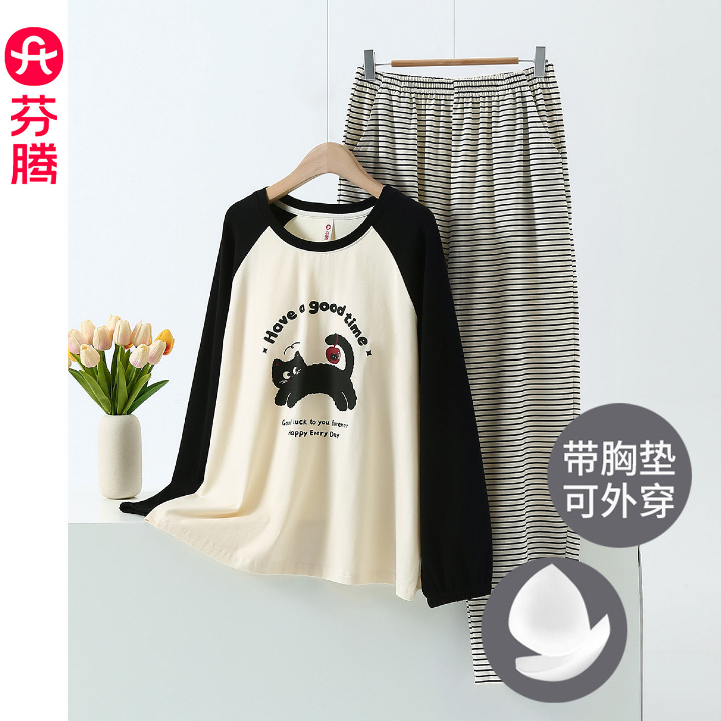 芬腾带胸垫睡衣女春款纯棉长袖卡通家居服休闲套装可外穿2026新款