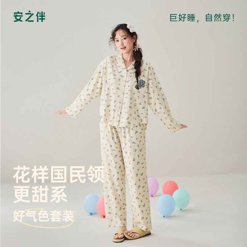 安之伴【巨柔软】纯棉睡衣女款春秋季休闲开衫春款碎花甜美家居服