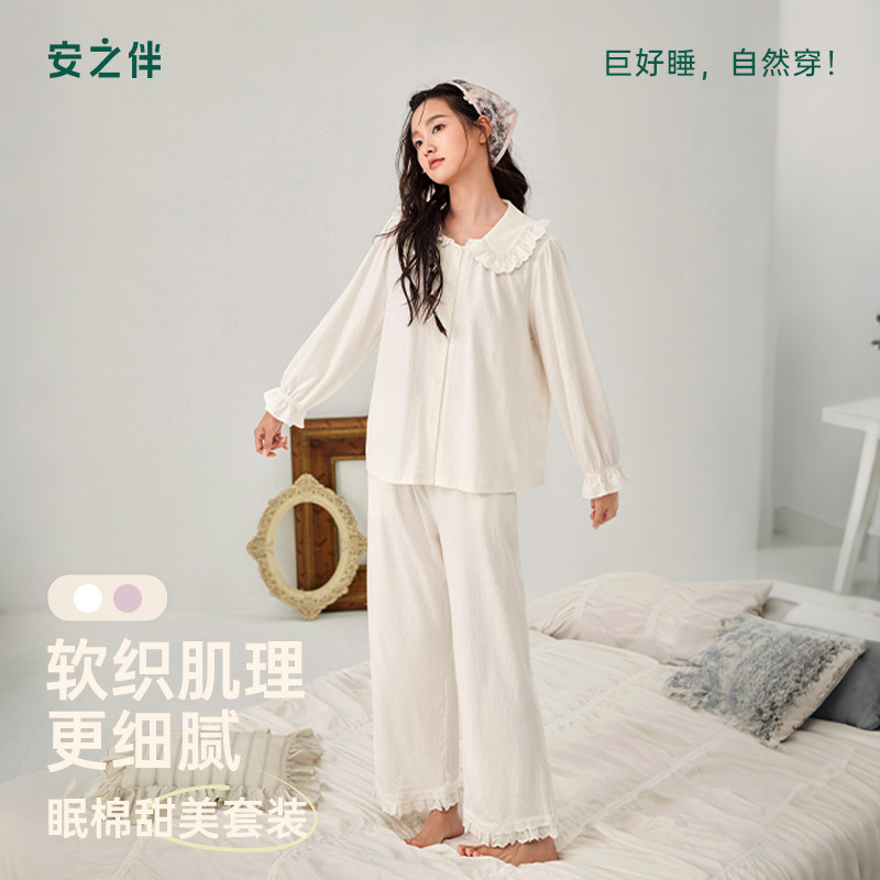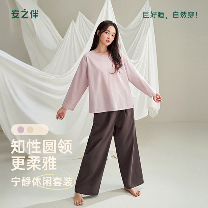 安之伴【巨柔软】睡衣女士春秋季梭织纯棉长袖春款简约家居服套装