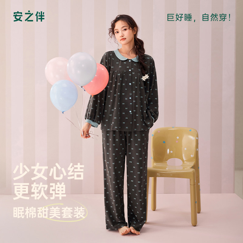 安之伴【巨柔软】纯棉睡衣女春秋季针织棉长袖衬衫春款甜美家居服