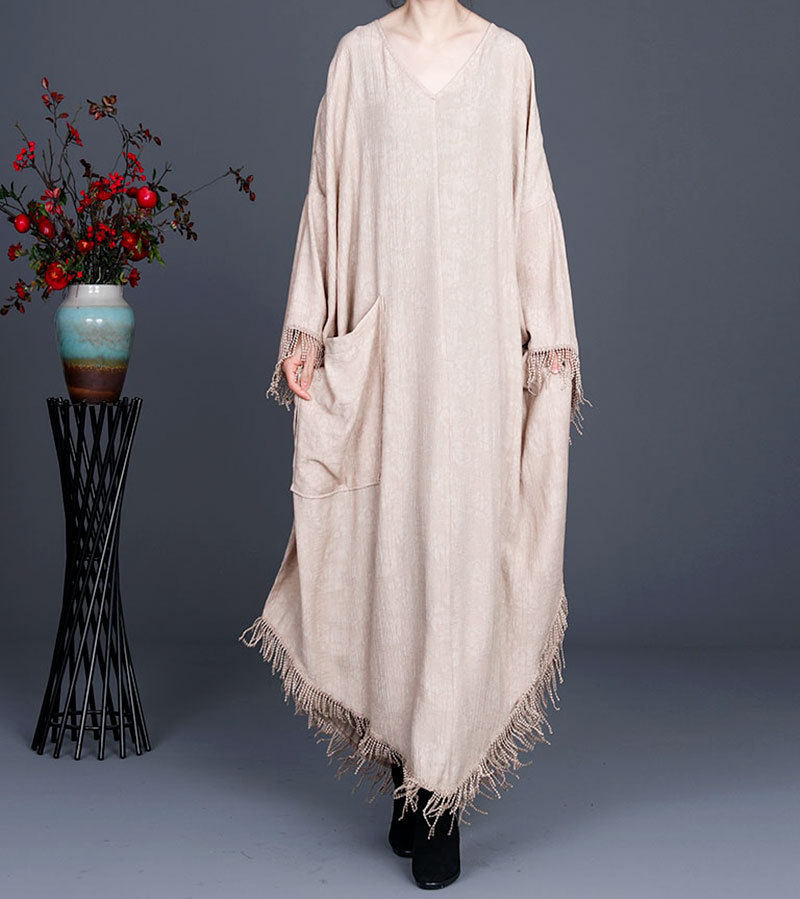 2021春装新款大码女装复古民族风不规则天丝麻蝙蝠袖连衣裙200斤