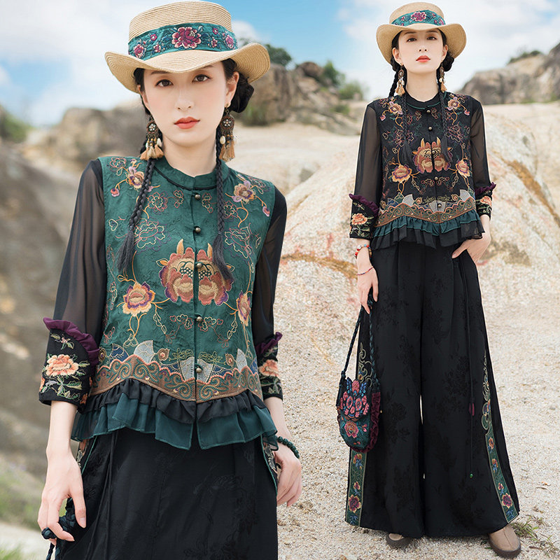 春装四季款民族风重工刺绣复古套头马甲外套女 休闲宽松马夹上衣