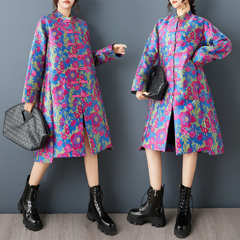 春装新款轻奢提花双层宽松风衣时尚国风中式盘扣中长款外套民族风