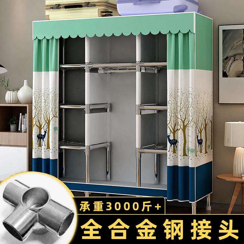 不锈钢简易衣柜布衣柜家用卧室全钢架加粗结实耐用防尘衣橱出租房